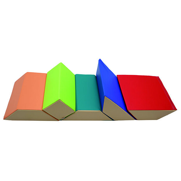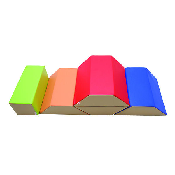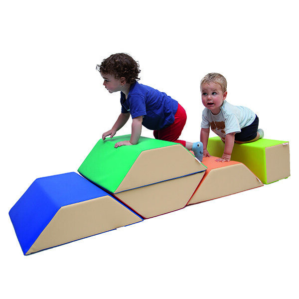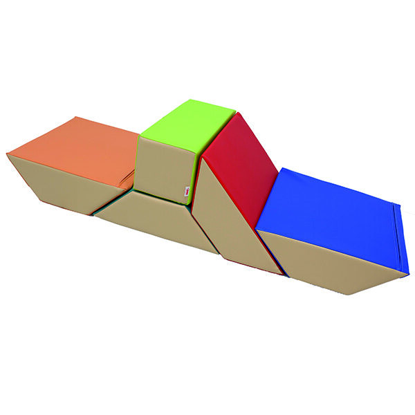 Set de 5 piezas acolchadas y de geometría tal que al combinarlas pueden generar distintos circuitos de gateo y desplazamiento. Estimula el gateo, la creatividad, la construcción y motricidad.