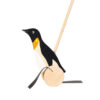 Palo de madera con ruedas y pato en su parte inferior. Al arrastrar, se estimula el desarrollo de la coordinación y movilidad.