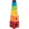 Zapato de madera de colores con cordel para practicar el enhebrado. Facilita el aprendizaje de atar cordones.